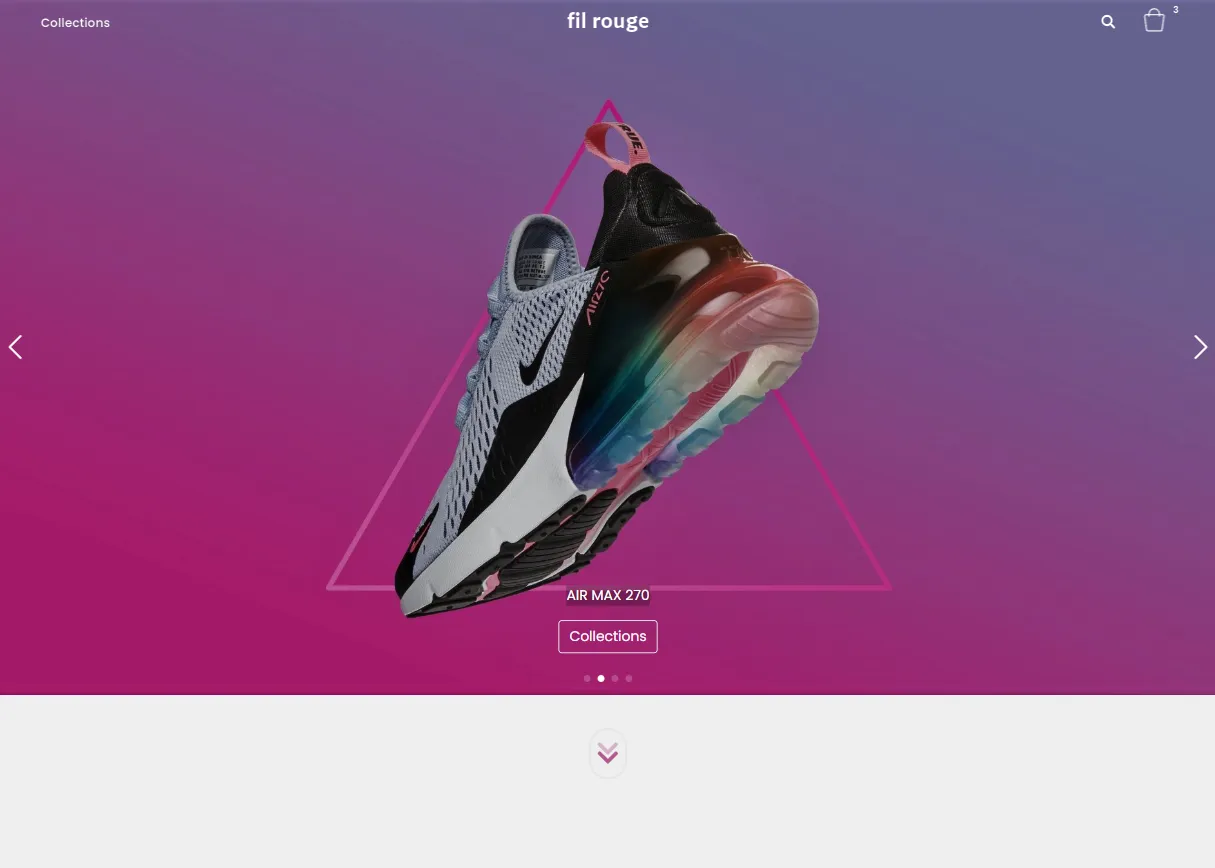 Front-end of a fictional e-commerce site selling sneakers.