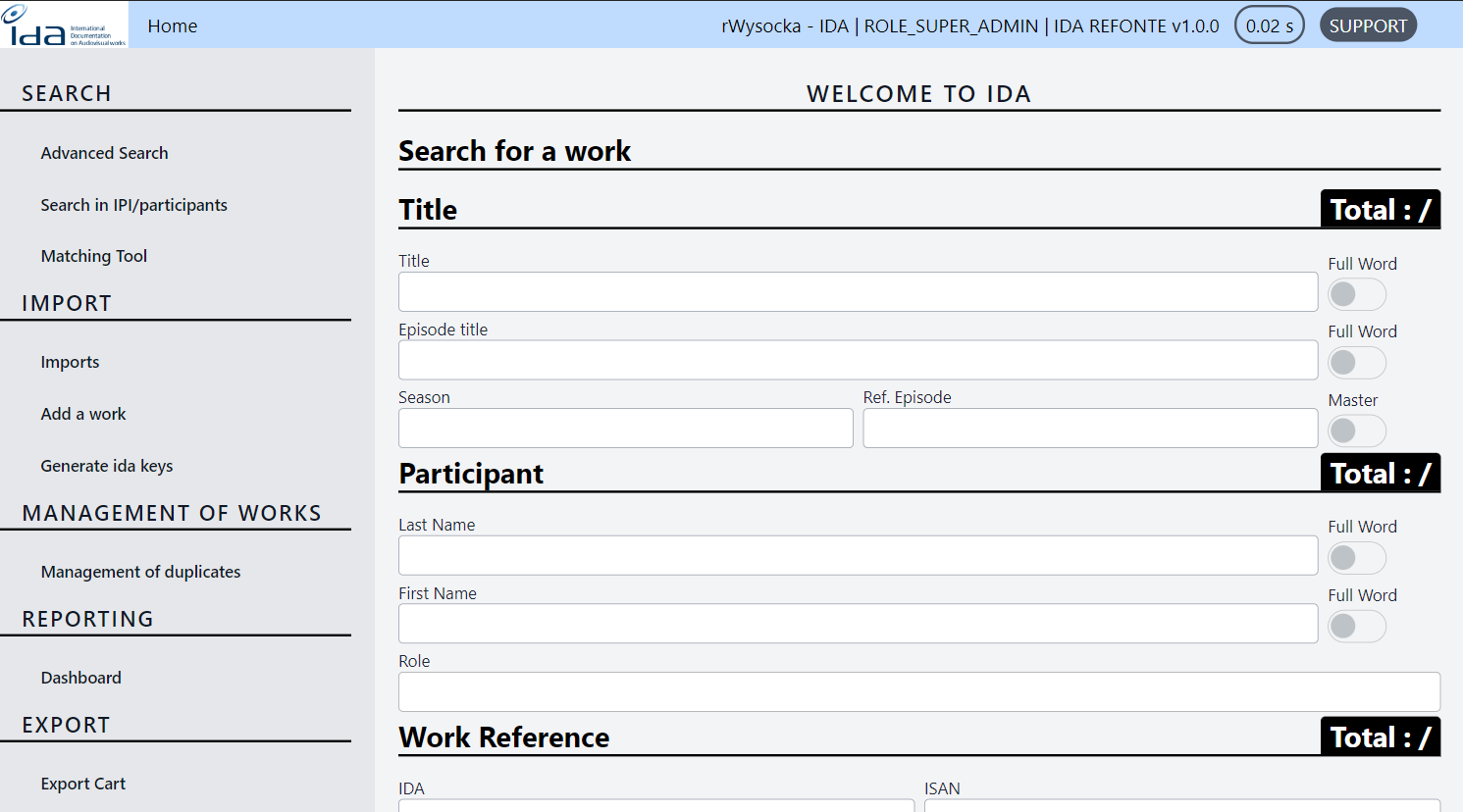 The International Documentation on Audiovisual works (IDA), is an international centralized database facilitating the identification of audiovisual works and rights holders. My job was to make a test book, set up browser tests. modify their CI/CD. In addition to adding support in Front-end development.