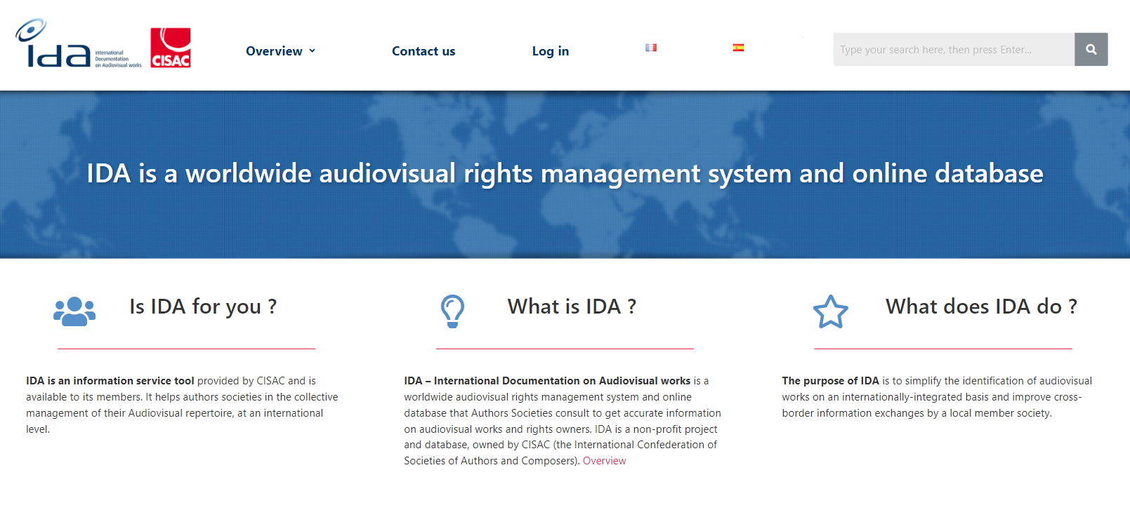 IDA est une application de gestion des droits audiovisuels internationaux et une base de données permettant l’identification en ligne d’œuvres audiovisuelles.