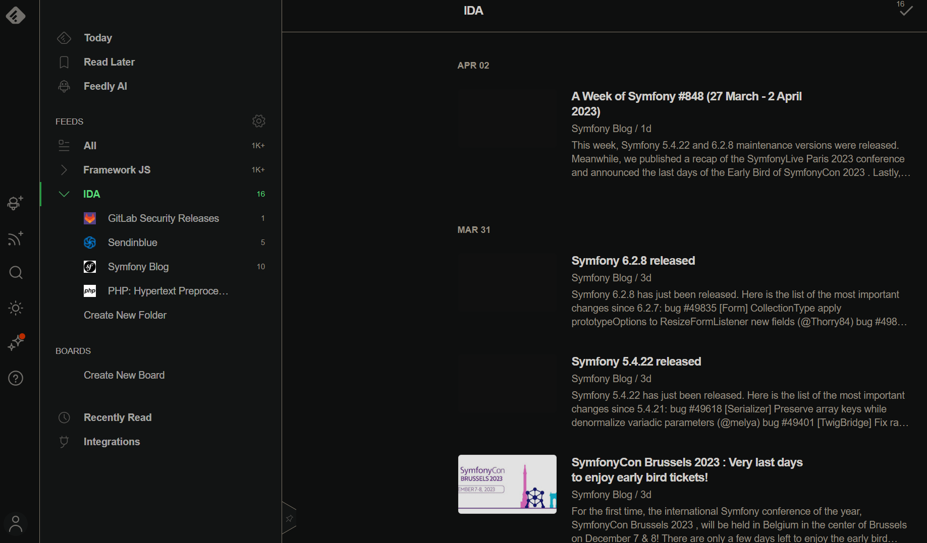 Collecter des articles avec Feedly : Feedly a été utilisé pour collecter et organiser des articles pertinents liés à notre stack technique afin de rester à jour sur les meilleures pratiques et tendances.