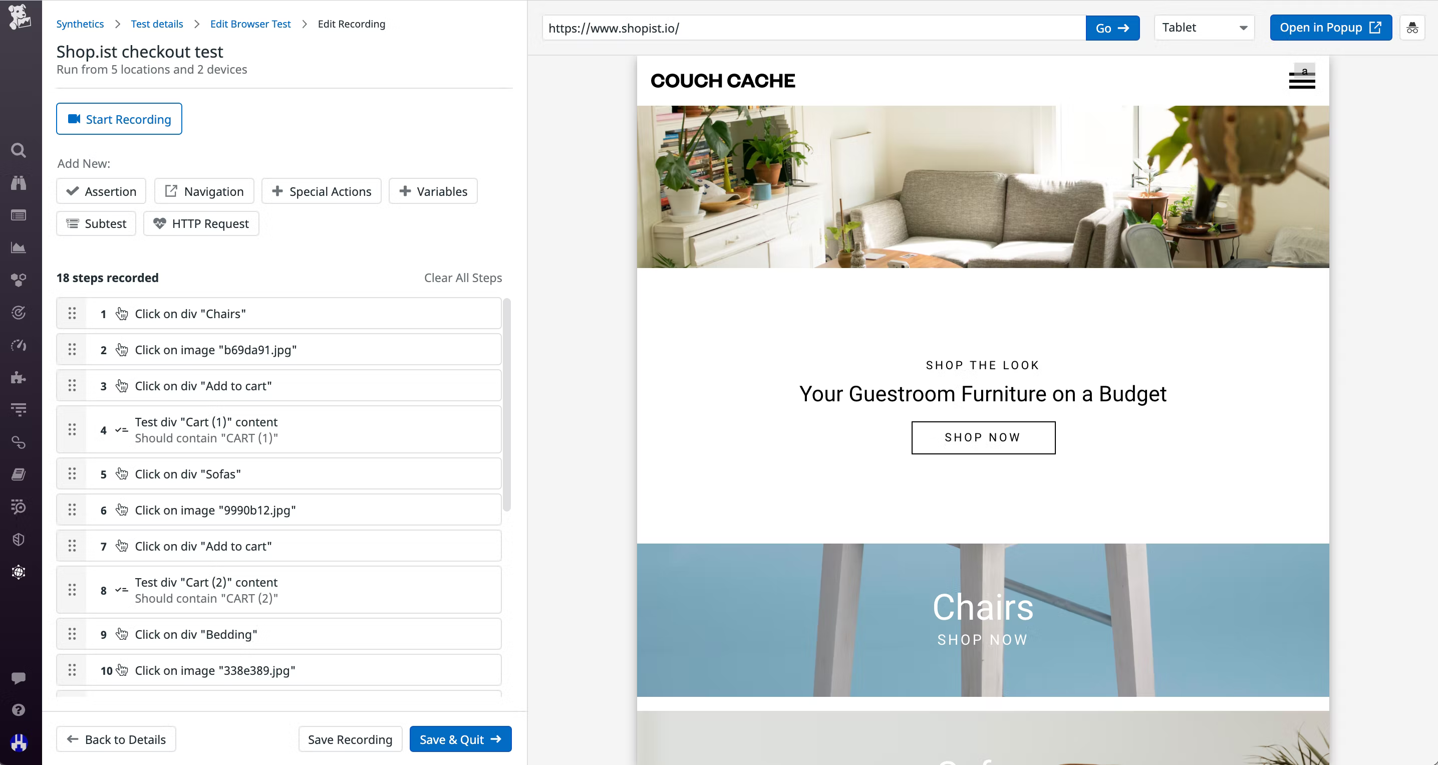 Browser test : Datadog Synthetic Monitoring a été utilisé pour effectuer des tests de navigateur afin de simuler l'activité des utilisateurs, offrant ainsi des résultats proches de la réalité. Comme IDA est utilisé dans de nombreux pays, nous avons pu lancer des tests à partir de plusieurs emplacements géographiques grâce à la liste diversifiée proposée par Datadog.