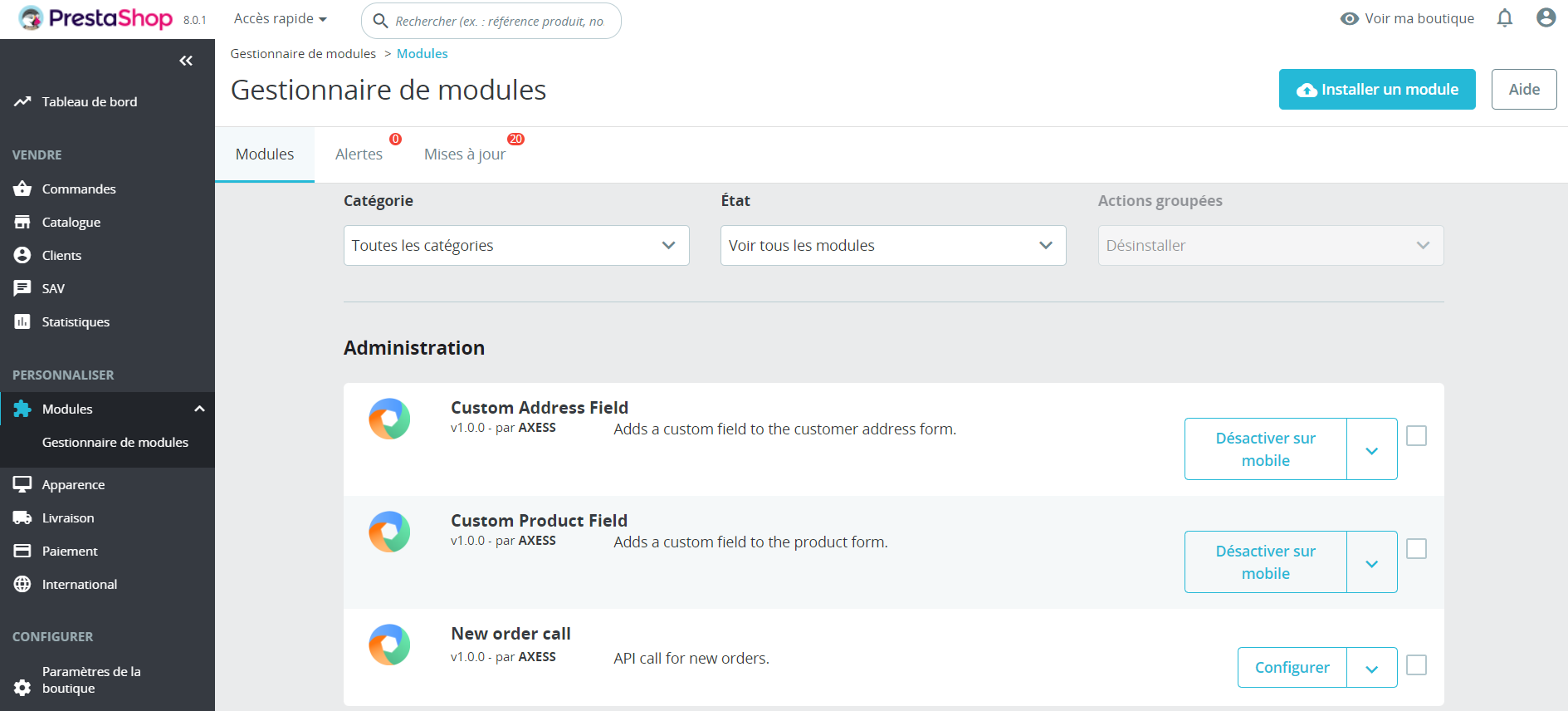 Mise à niveau/Refonte du CMS. Faciliter le processus de facturation en automatisant l'envoi des informations des commandes par le développement de module PrestaShop