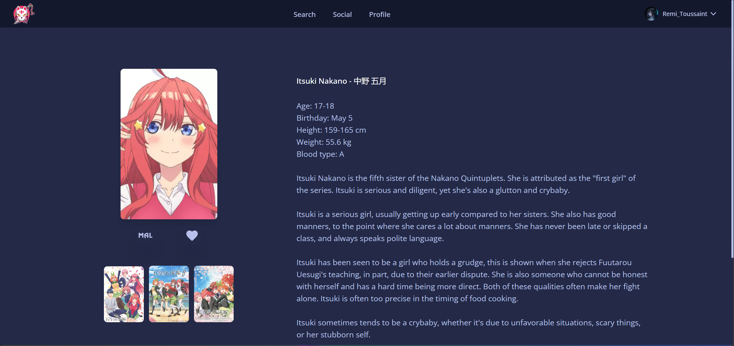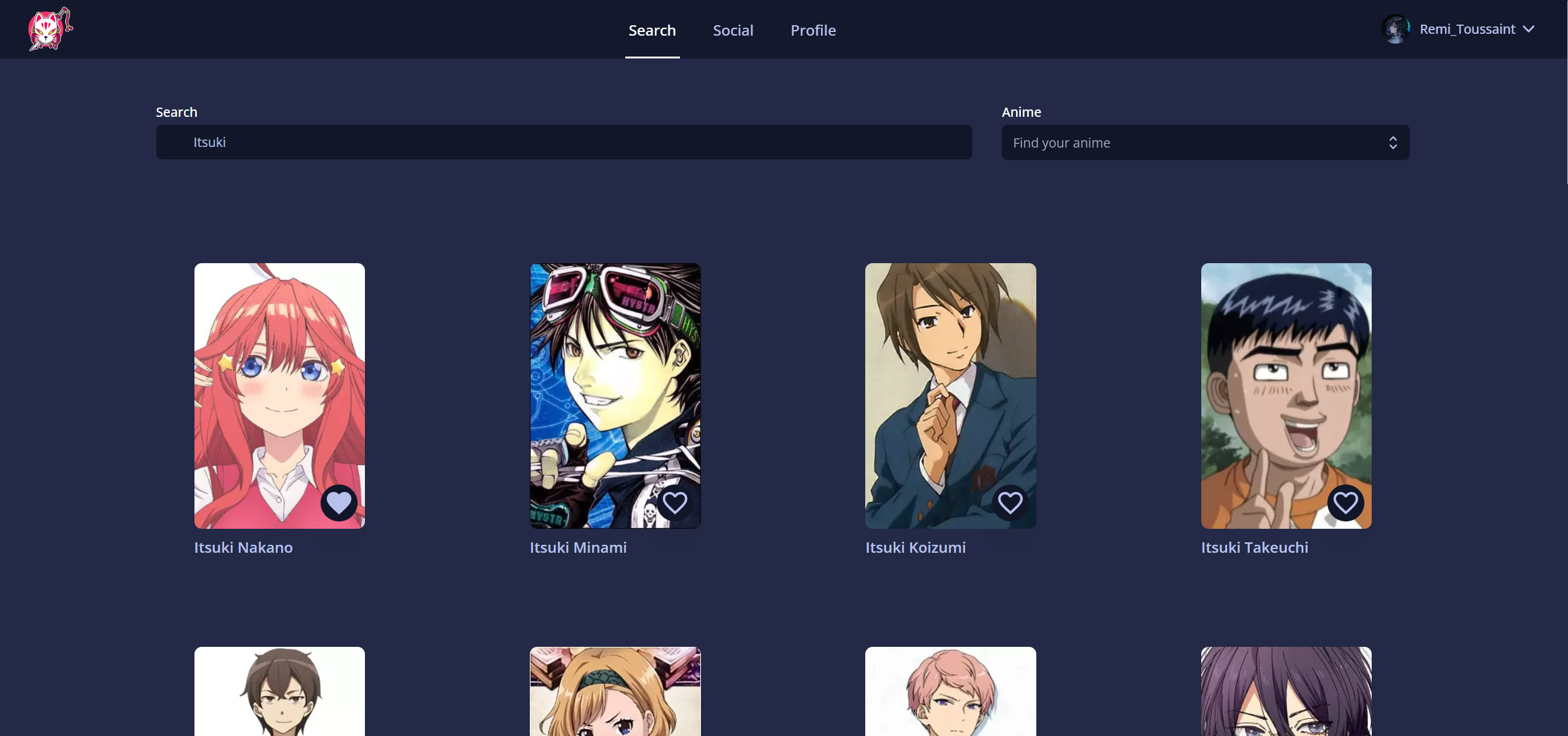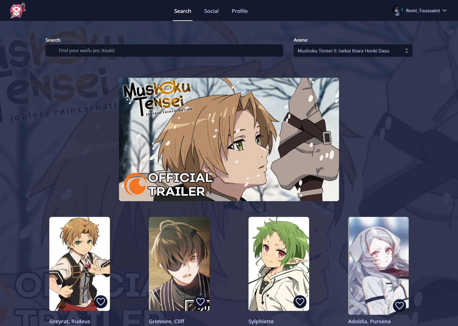 WaifuList est une plateforme utilisant l'API GraphQL du tracker d’animés et de mangas : Anilist. Elle permet aux utilisateurs de rechercher leurs waifus préférées, c'est-à-dire les personnages, et de consulter leurs informations. Les utilisateurs peuvent ajouter ces personnages à leurs favoris et consulter les favoris des autres utilisateurs.
