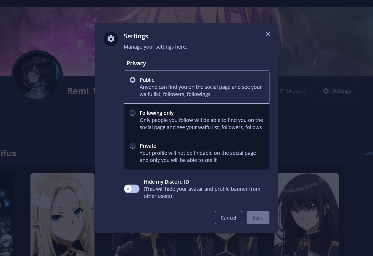 Creation of a platform where you can create and share your waifus list.