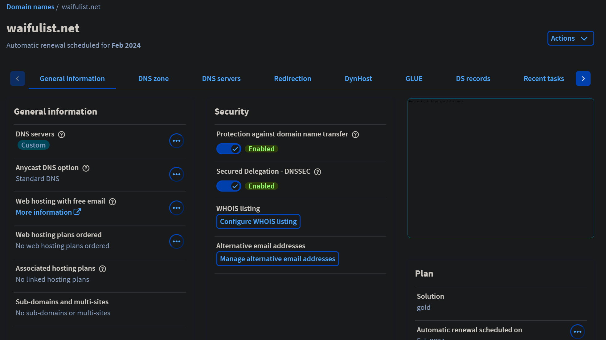 Gestion du nom de domaine : Le nom de domaine a été enregistré et est géré avec OVH.
