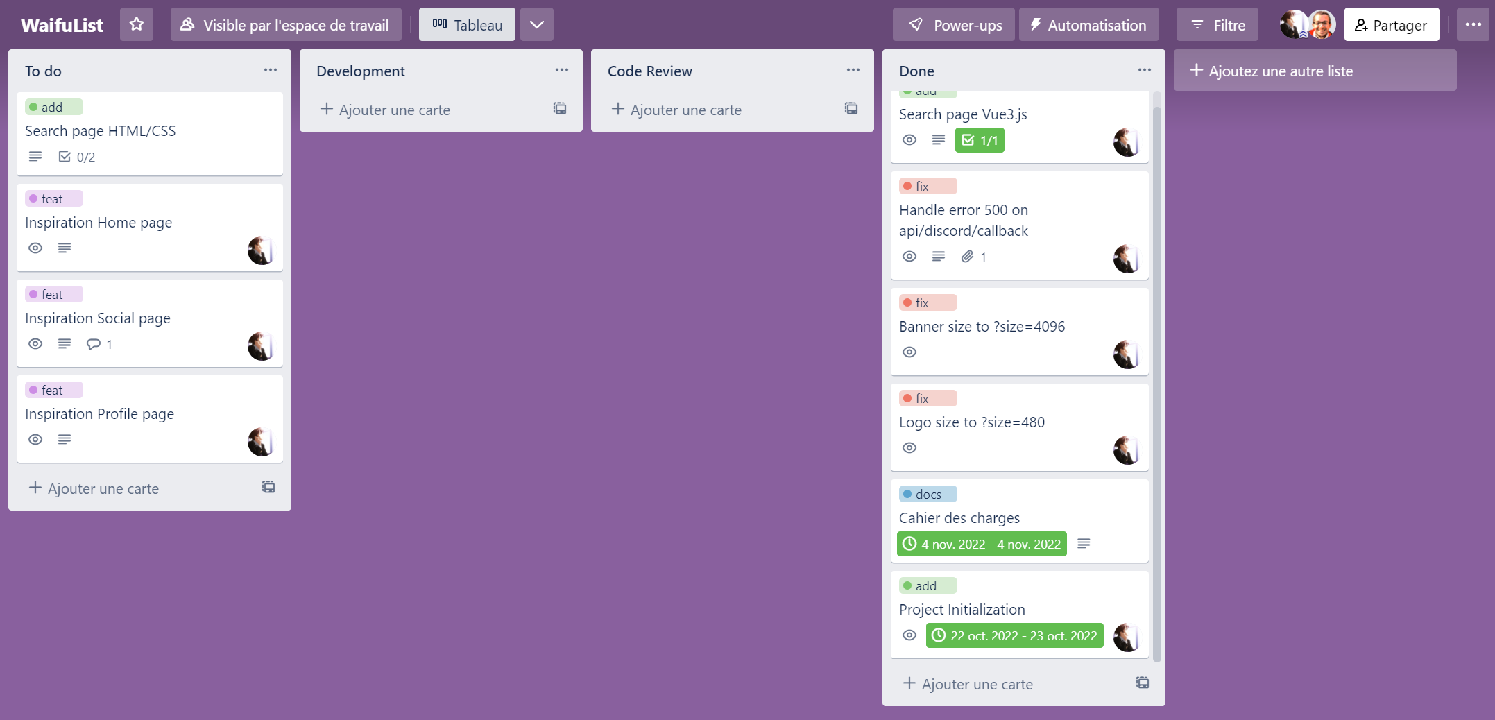 Cahier des charges : Un cahier des charges a été rédigé pour définir les objectifs et les fonctionnalités de la plateforme WaifuList.