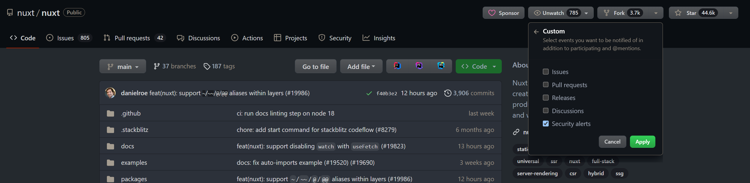 Notification de sécurité : Des notifications de sécurité ont été mises en place sur GitHub pour rester informé des dernières vulnérabilités concernant notre stack technique.