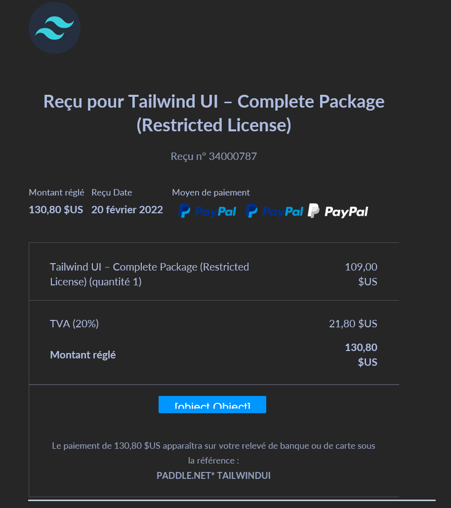 Licence : TailwindUI a été utilisé sous licence non commerciale pour aider dans le développement de l'interface utilisateur à travers la multitude de composants qu’il propose.
